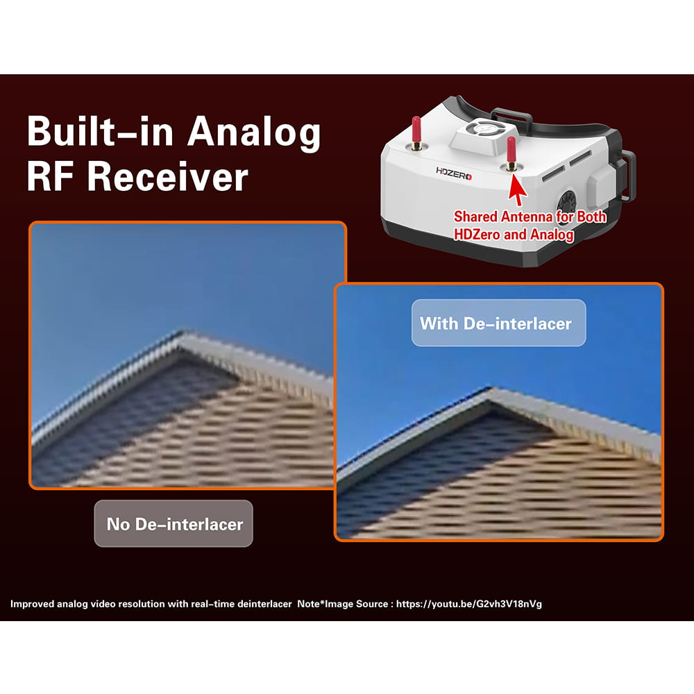 - Built-in high-sensitivity analog receiver for superior analog FPV performance.
