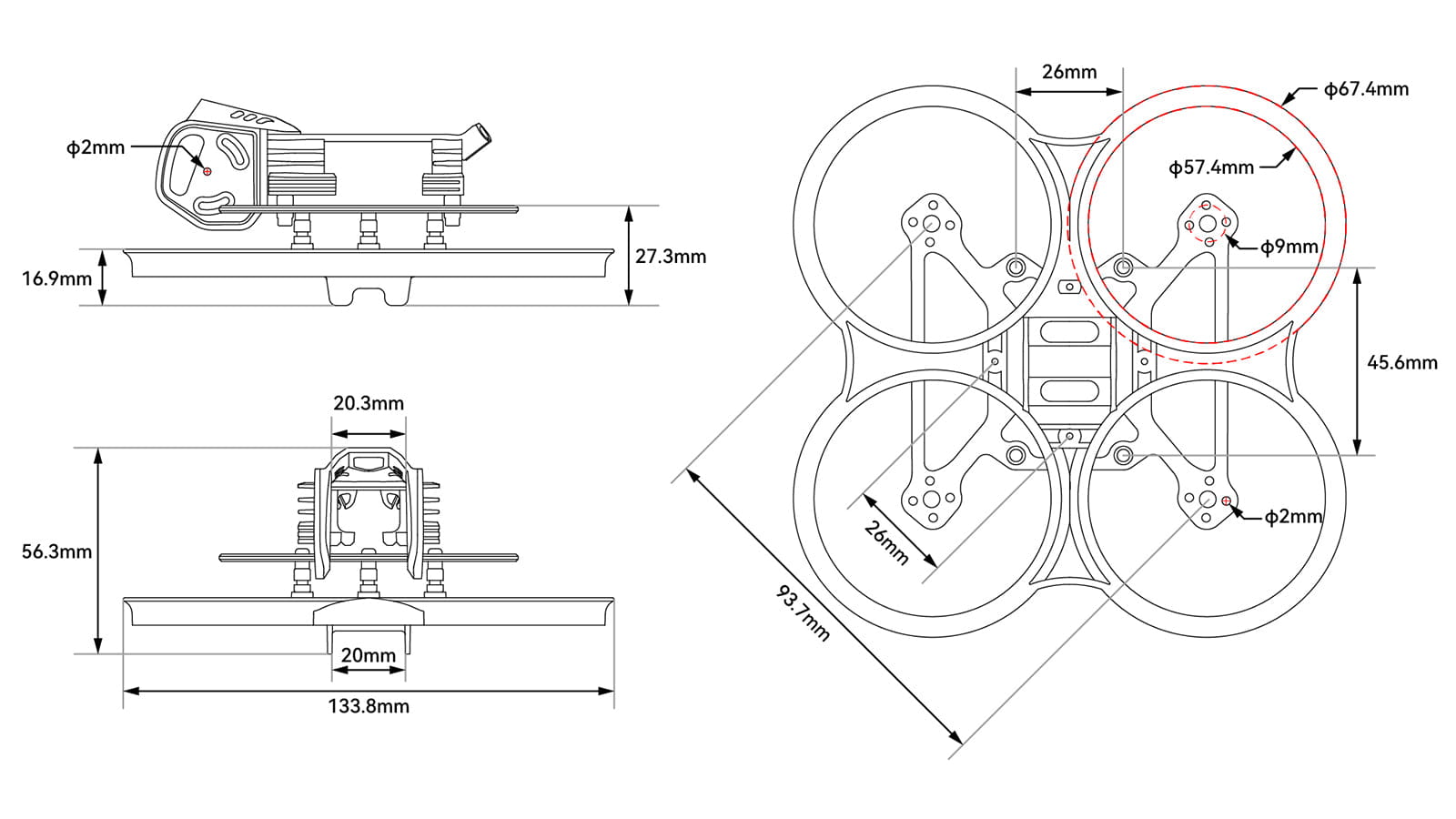 - Motor Mounting Hole Size: 4-M2-φ9mm